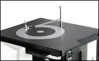 圓形可旋轉載物(wù)台板尺寸:最大外徑(jìng)Ф130mm,最小通光(guāng)口徑小(xiǎo)於20mm. |