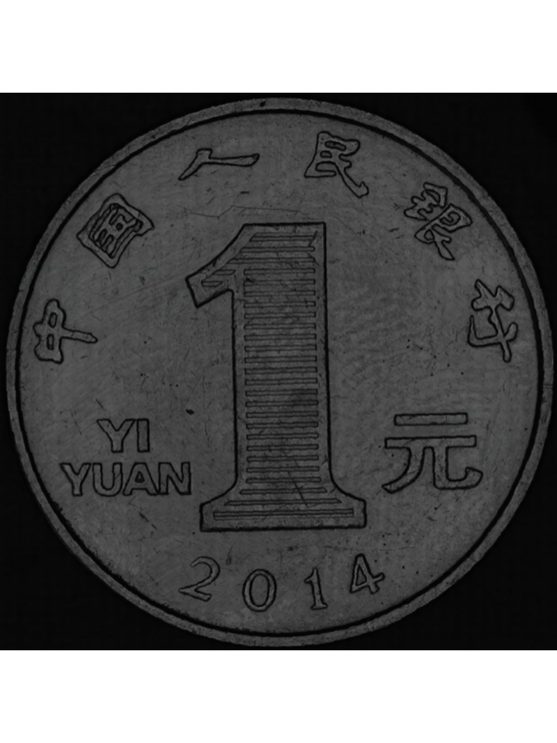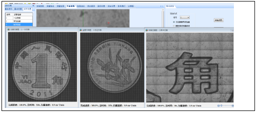 對XY自動平台上的一元硬幣,設(shè)置掃描範圍20×15mm,進行全景掃描(miáo)。HDS係統控製電機移(yí)動並且將相機拍攝到的分辨率為640×512的圖片(piàn)抓取出來,最終一共(gòng)將2500多幅圖片接成如下一頁所示的效果圖片。