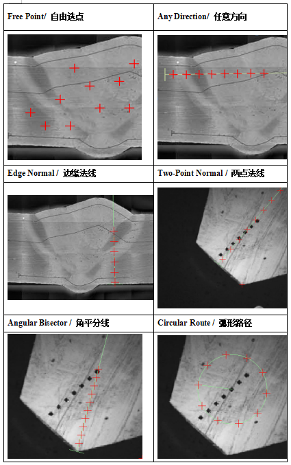 作(zuò)為測量功能的拓展,在“測(cè)量路徑”頁麵中(zhōng),提供了8種通過鼠(shǔ)標點選圖像的方式完成待測路徑的精確規劃。