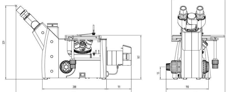FCM2000W電腦型金相顯微鏡尺(chǐ)寸圖