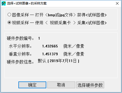 l 點擊“裝入圖像”,在(zài)彈出窗(chuāng)口後,選擇視頻采樣選(xuǎn)項(xiàng)。然後點擊“確定(dìng)”。出現圖像采集窗口采樣