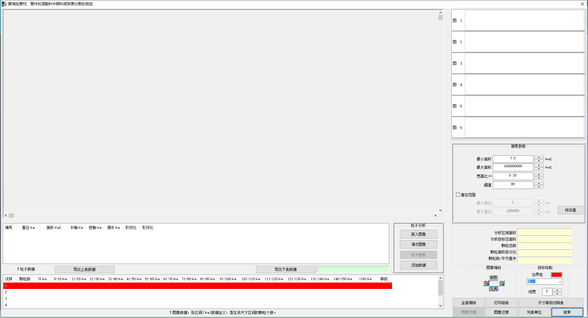 最小麵積、最大麵積、寬高比、直徑範(fàn)圍:軟件隻搜索出設置區間內的顆粒。