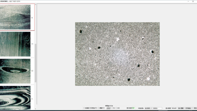 l 把采集到的顯微照片設(shè)定好相應(yīng)的倍數,然後與左側的標準圖(即GB/T18251-2019標準中附錄B中的圖(tú))相比較而評級