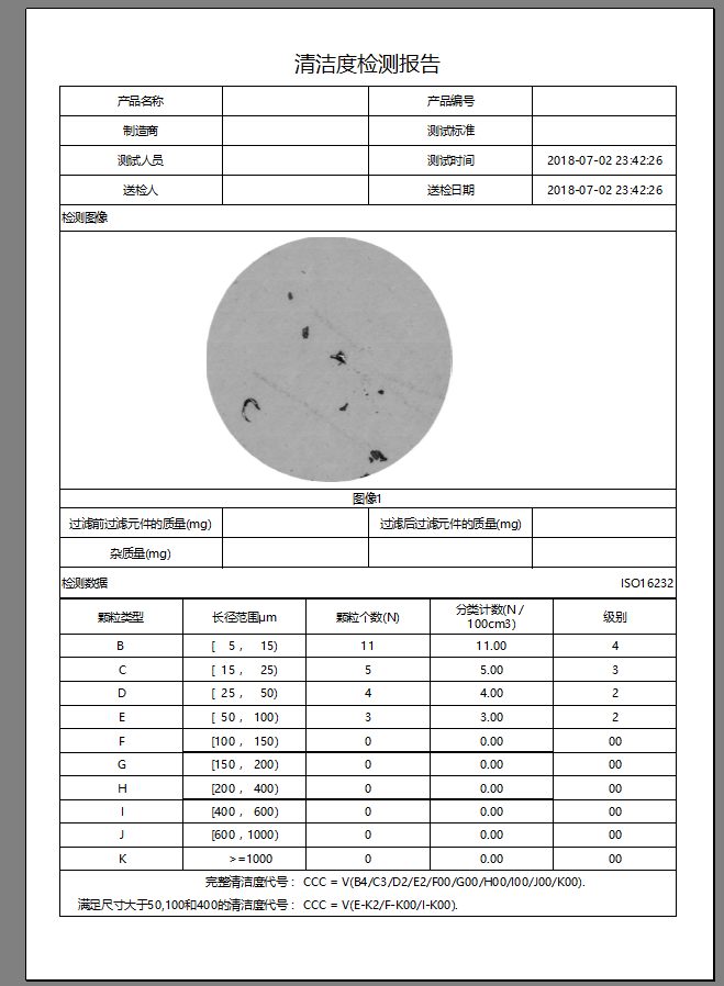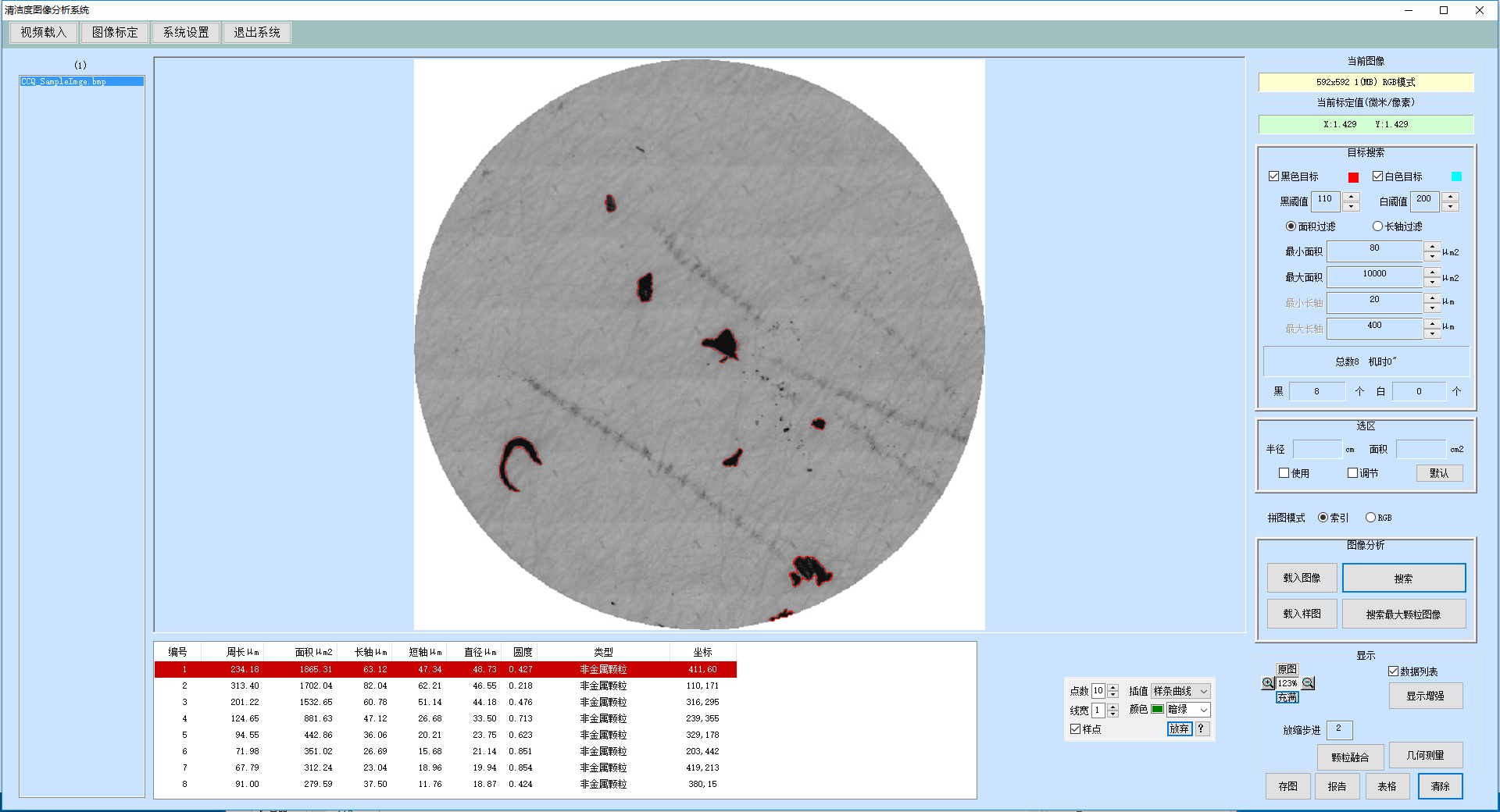 l 載入樣圖:裝入軟件預置的清潔度圖像(xiàng),便於測試軟件功能。