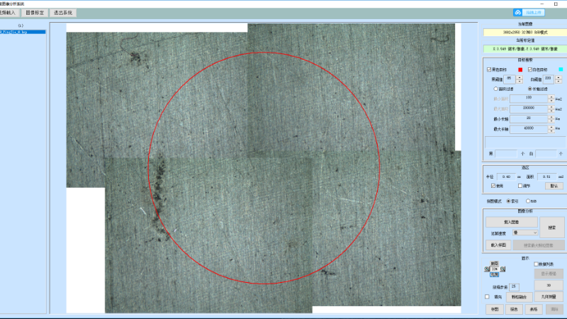 3、 選區:軟件隻分析選區內的(de)顆粒: