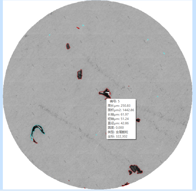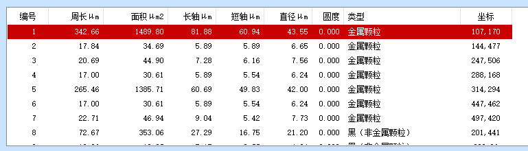 l 搜索最大顆粒(lì)圖像:搜索出金屬、非金屬和纖維第一大和(hé)第二大顆粒(lì)圖像。