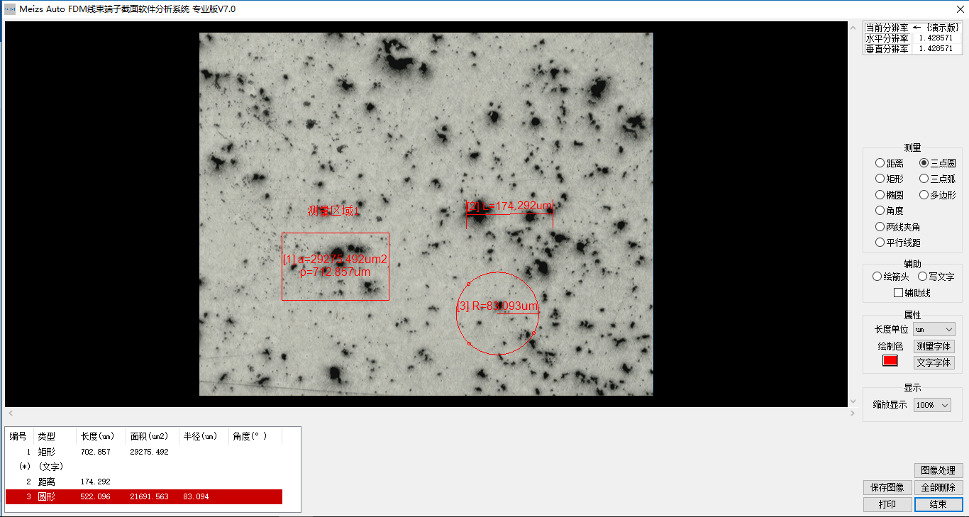 載入圖片選擇相應的測(cè)量工具進行測量(liàng)及標注,測量完成後將測量結果顯示到數據(jù)列表中。
