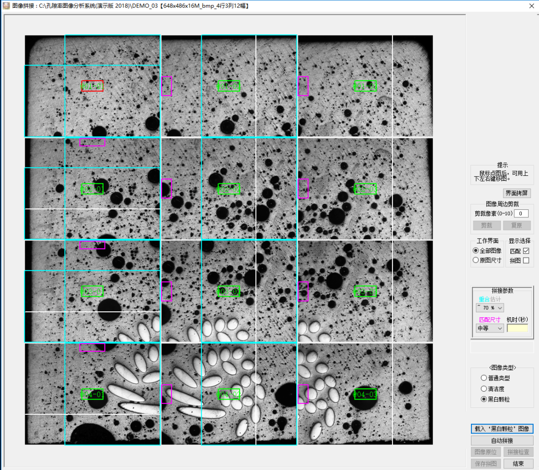 ●圖像拚接功能:設置好拚接參數(shù)和圖像類型,點擊自動拚接,自動完成圖像拚接