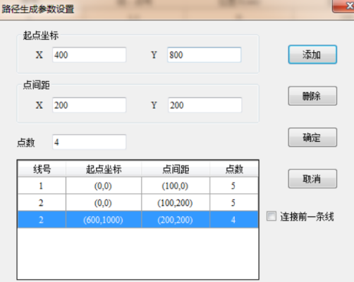 空心設置(zhì)“起點坐標”、“點間距”和“點數”後點擊“添加”即可規劃出測試路徑,開始測試(shì)。如圖所示